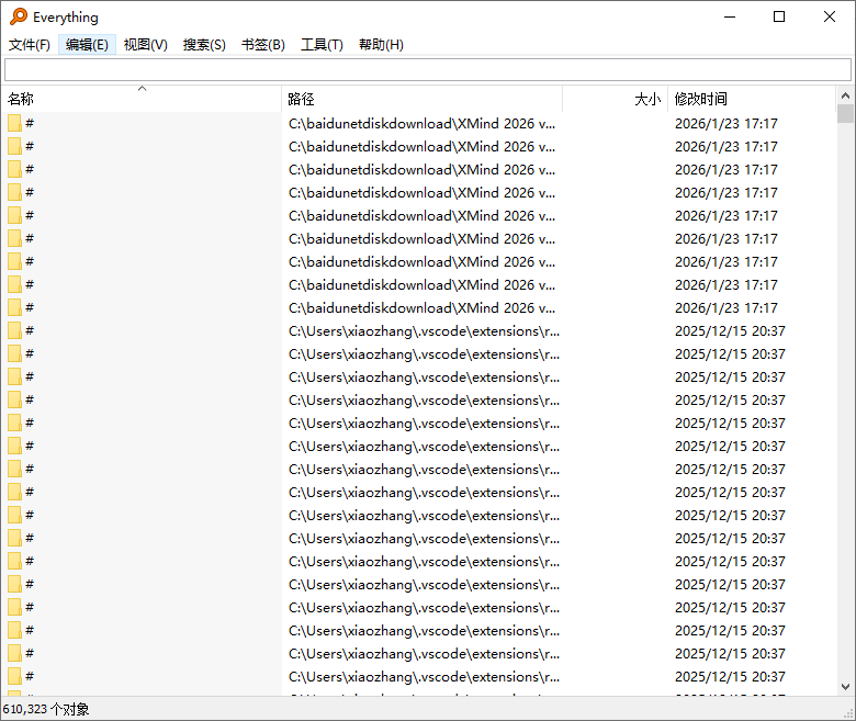 不像 Windows 内置搜索,Everything 默认显示电脑上每个文件和文件夹 (就如其名 "Everything")。